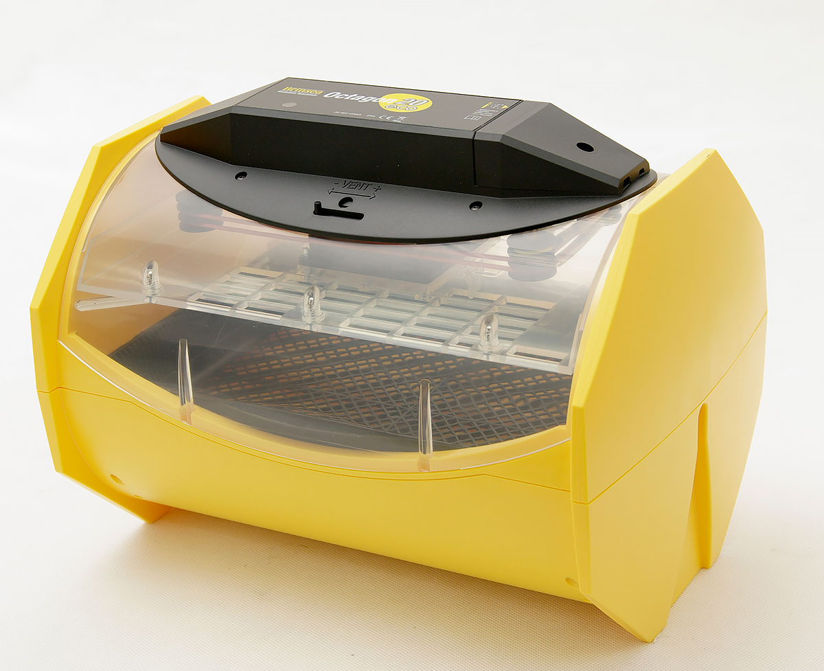 Octagon 20 jest to najlepiej sprzedający się inkubator z serii Brinsea Octagon. Jest to średniej wielkości inkubator do wylęgu jaj w podstawowej wersji. Wyposażony w pełną kontrolą temperatury. Niezwykle prosty w użyciu i obsłudze. Pojemność do 24 jaj kurzych, półautomatyczny obrót jaj (realizowany w prosty sposób obrotu całej komory lęgowej). Idealny dla początkujących hodowców i hobbystów, a także profesjonalistów. Komora lęgowa z przezroczystego materiału o dużym współczynniku wytrzymałości daje pełną możliwość wglądu inkubowanych jaj bez konieczności otwierania Inkubatora. Powierzchnia specjalnego tworzywa jest łatwa do mycia i dezynfekcji. Pełna kontrola temperatury daje możliwość inkubacji jaj gadów np. jaj węży.