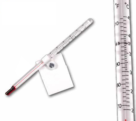 Skala pomiarowa naniesiona jest bezpośrenio na rurce i odczyt możliwy jest stopniach Celsjusza i Fahrenheita. Termometr dedykowany jest głównie do inkubatorów, dlatego podziałka jest w zakresie 20-45 stopni Celsjusza (70-110 stopni Fahrenheita). Dla potrzeb stosowania w inkubatorach na podziałce wyróżniono wartość 37,7oC czyli 99,8F, czyli temperaturę inkubacji jaj ptasich.