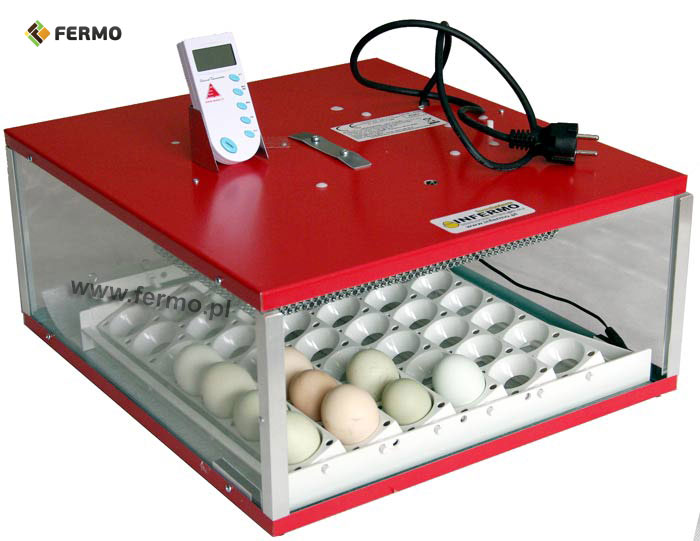 Taca lęgowa z automatycznym obracaniem jaj do ibatorAutomatyczna taca lęgowa zasilana jest niezależnie i jest autonomicznym urządzeniem. Może być wyciągnięta z inkubatora i użyta np. do przechowywania jaj przed inkubacją Konstrukcja inkubatora opracowana została we Włoszech. Obudowa wykonana jest z Metalu i Plexiglasu , układ termoregulatora wraz grzałką i termostatem umieszczony został w górnej pokrywie, w której dodatkowo umieszczono otwory wentylacyjne dla lepszej wymiany powietrza. Na dnie inkubatora znajduje się specjalna wkładka, która szczelnie przykrywa dno inkubatora i na niej zbierają się wszystkie nieczystości, dzięki czemu inkubator jest łatwy do czyszczenia.